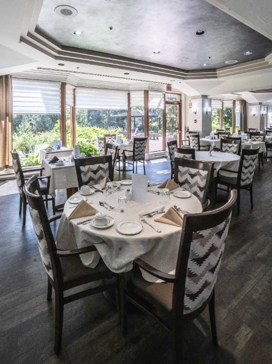 Beautifully set tables with proper plating—MK Kosher certified cuisine served with the dignity and elegance it deserves.